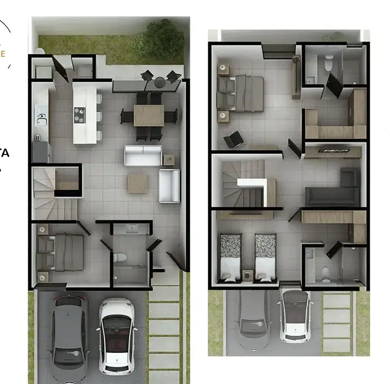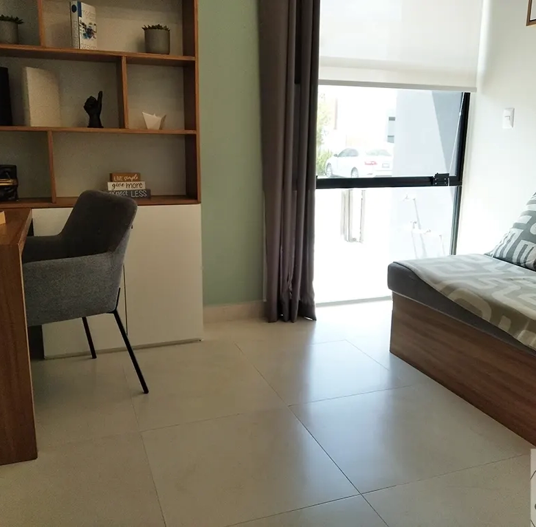 El modelo con recámara o estudio en planta baja ofrece espacios amplios, versátiles y bien distribuidos, pensados para adaptarse a las necesidades de tu familia.