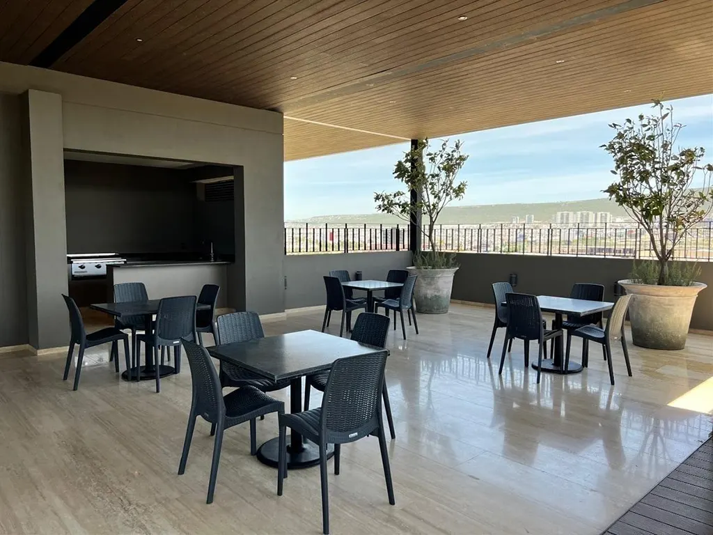 Amenidades premium.alberca, gimnasio, salón de usos múltiples, áreas verdes, seguridad 24/7, roof garden con vistas panorámicas, fire pit, asadores, pista de jogging, zona de juegos infantiles y palapas sociales.