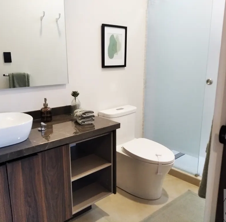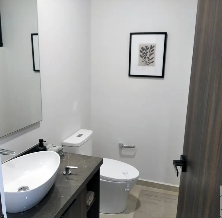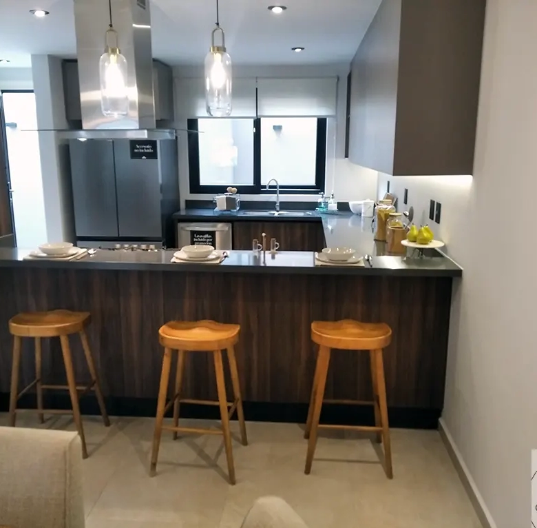 Cocina completamente equipada con lavavajillas integrado. Espacios amplios y funcionales para que preparar alimentos sea un momento de disfrute familiar, no una carga. Acabados premium en tarja, cubiertas y alacenas. Perfecta para esas cenas que fortalecen lazos o para preparar meal prep los domingos.