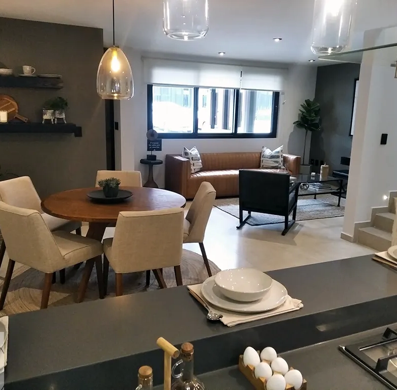 Materiales seleccionados de alta calidad en pisos, herrería, baños y cocina. Acabados premium que no solo se ven bien hoy, sino que mantienen su valor por décadas. Detalles de diseño contemporáneo que facilitan el mantenimiento y lucen impecables con mínimo esfuerzo.
