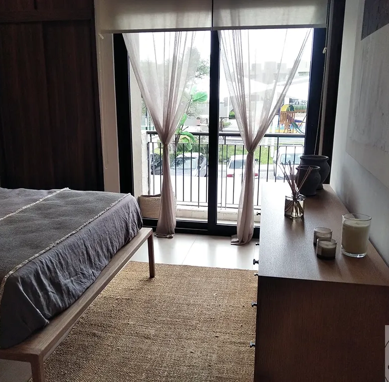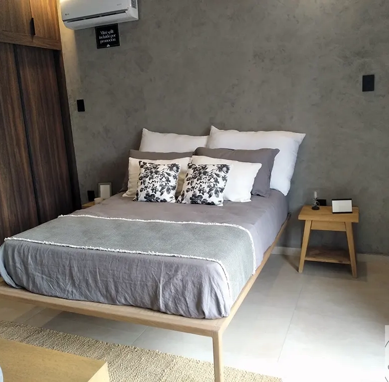 Iluminación Smart Home que se adapta a tu rutina diaria. Controla luces, temperatura y consumos de manera inteligente. Los paneles fotovoltaicos incluidos reducen tu recibo de luz hasta un 40%, y con el mini split instalado (te ofrecemos la preparación) mantienes el confort sin preocuparte por costos excesivos. Persianas de calidad que complementan la climatización natural.