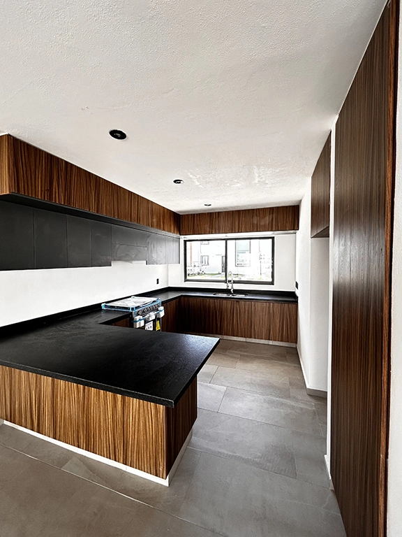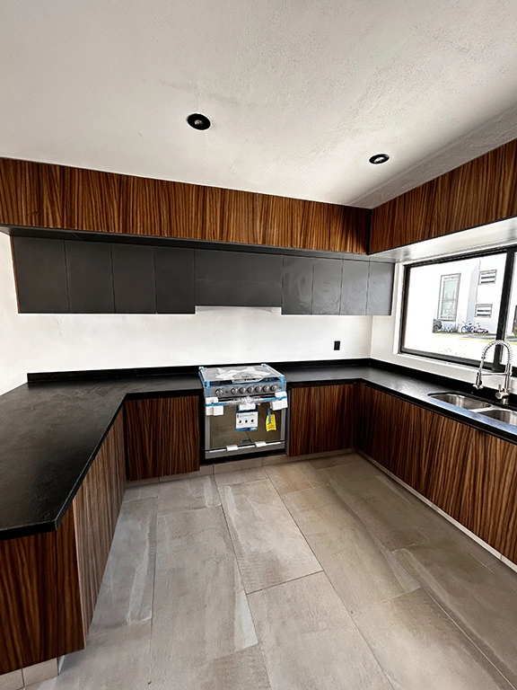 - Cocina integral equipada, con cubierta de granito, alacenas, estufa, BARRA DESAYUNADORA.