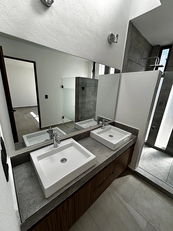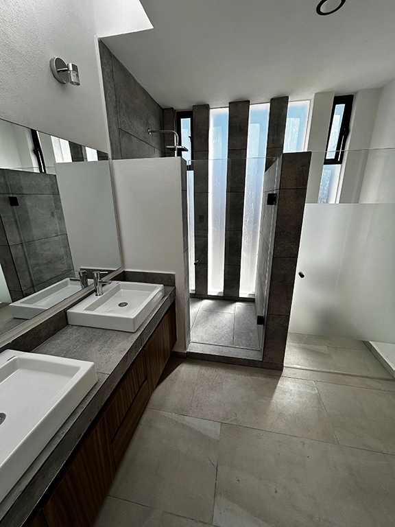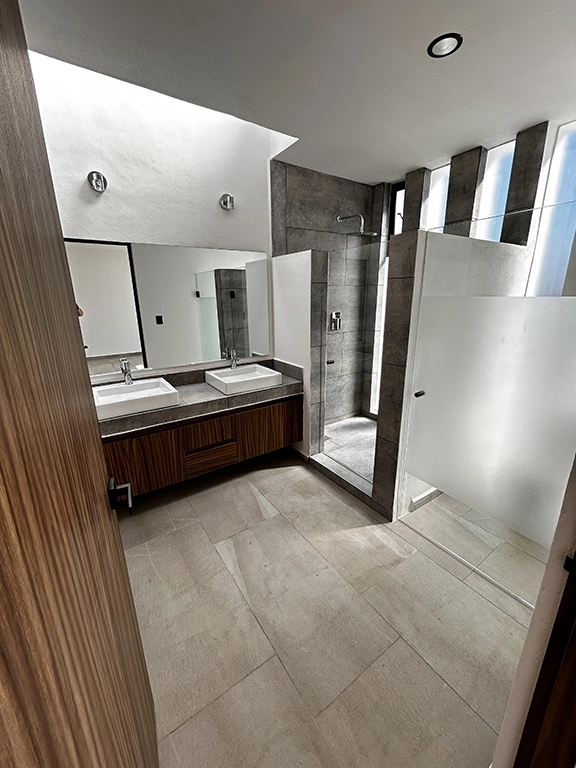 - Recamara principal con baño completo, canceles de cristal templado, y un amplio vestidor.